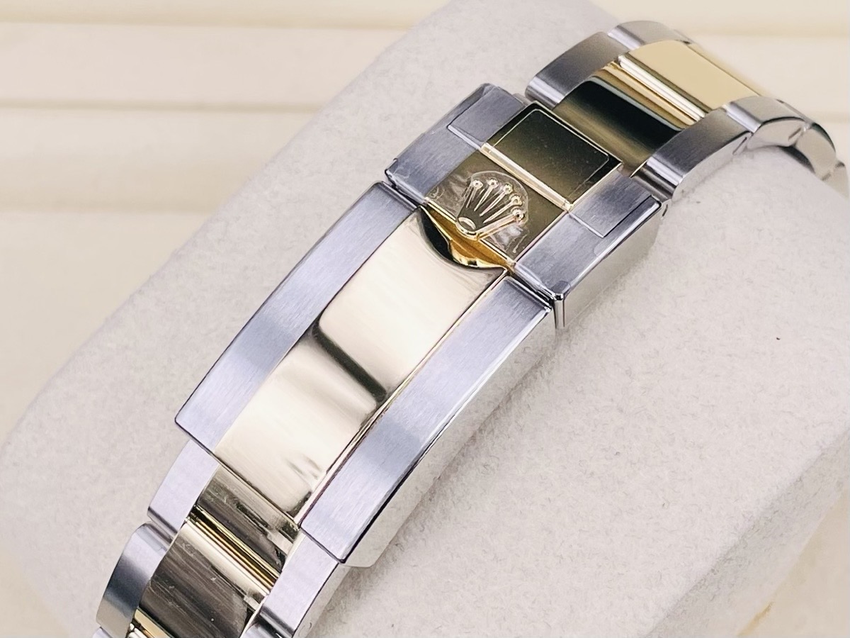 18K黃金+904L精鋼材質錶殼、錶帶、摺疊扣、旋入式錶冠 / 夜光指針及立體時標 / 18K黃金視距儀刻度錶圈 / 藍寶石水晶玻璃 / 防偽內圈