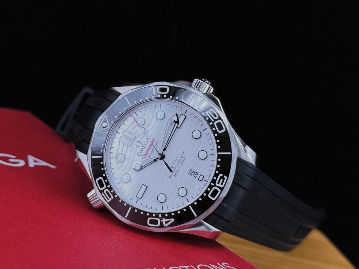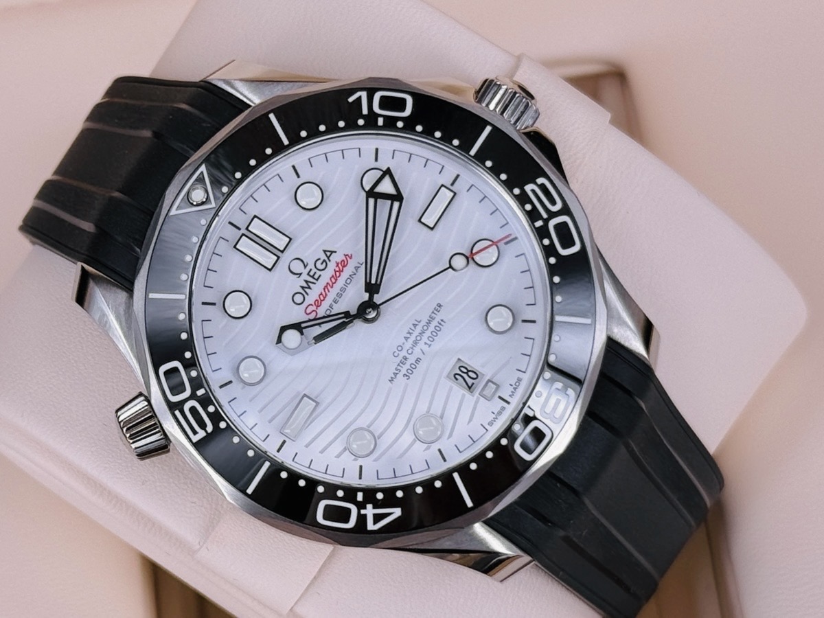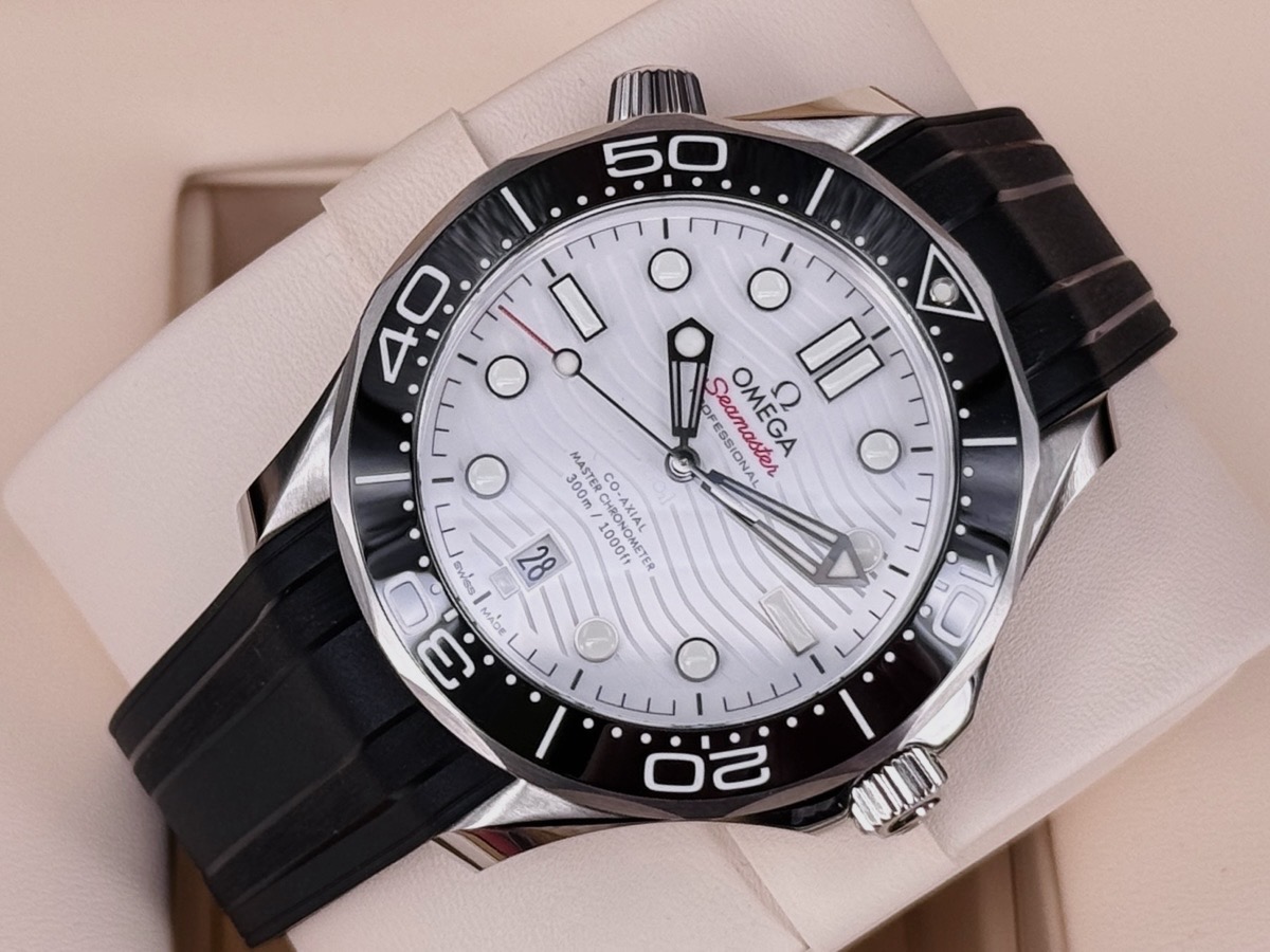 OMEGA 歐米茄 Sesmaster 海馬系列 210.32.42.20.04.001 白色面盤 黑色陶瓷錶圈 同軸擒縱 專業潛水錶300米防水 不鏽鋼黑色橡膠錶帶海馬