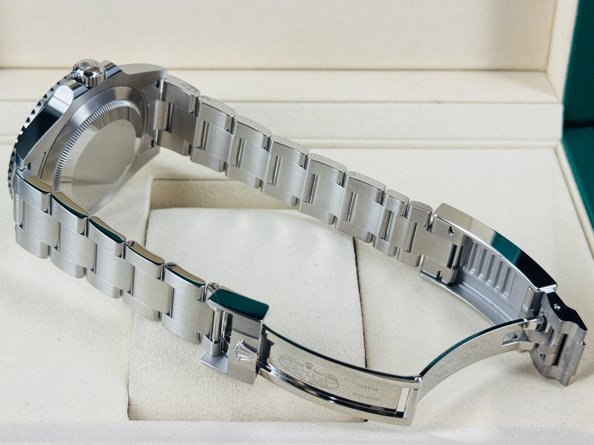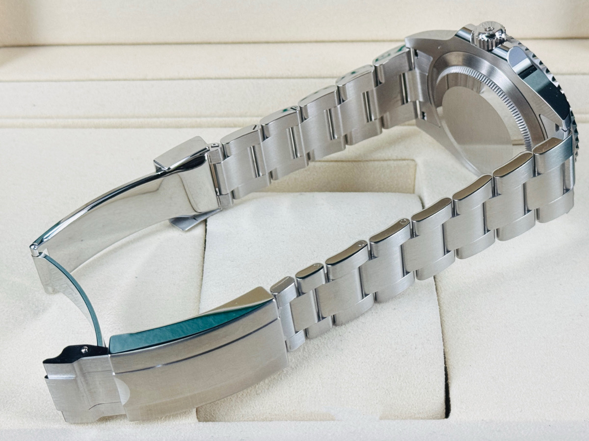 904L精鋼材質錶殼、錶帶、快調式摺疊扣 / 黑色面盤 / 夜光賓士指針、時標 / Cerachrom綠色陶瓷單向旋轉錶圈 / 旋入式錶冠 / 抗磨損藍寶石水晶玻璃 / 防偽內圈