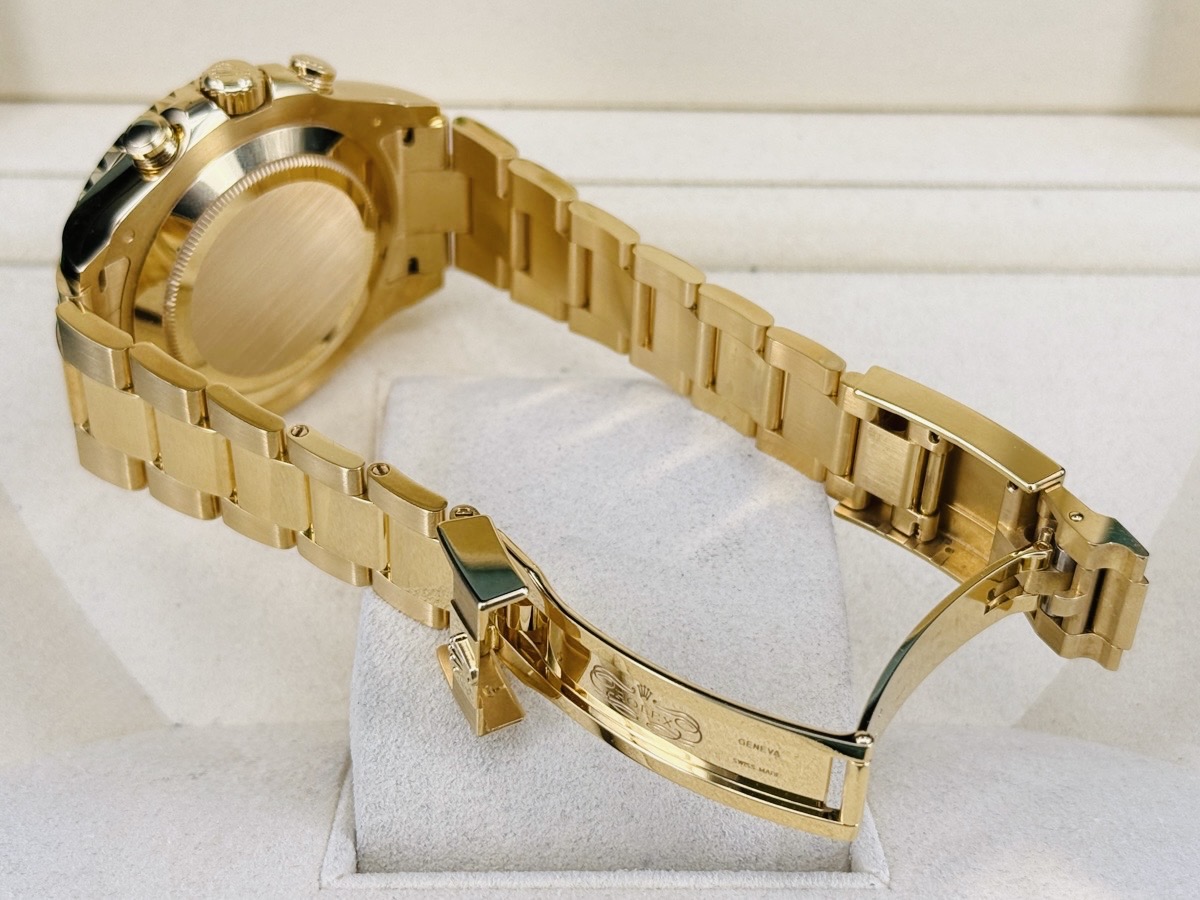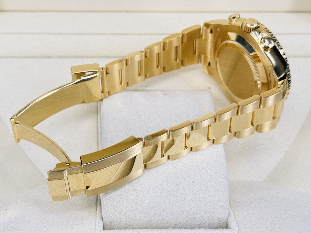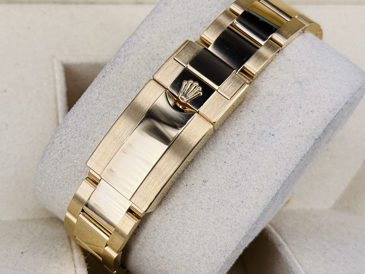 18K黃金材質錶殼、錶帶、摺疊扣 / 白色面盤、CHROMALIGHT(持久夜光黃K金指針、時標 / 黃K金材質旋轉錶圈,旋入式錶冠 / 抗磨損藍寶石水晶玻璃 / 防偽內圈