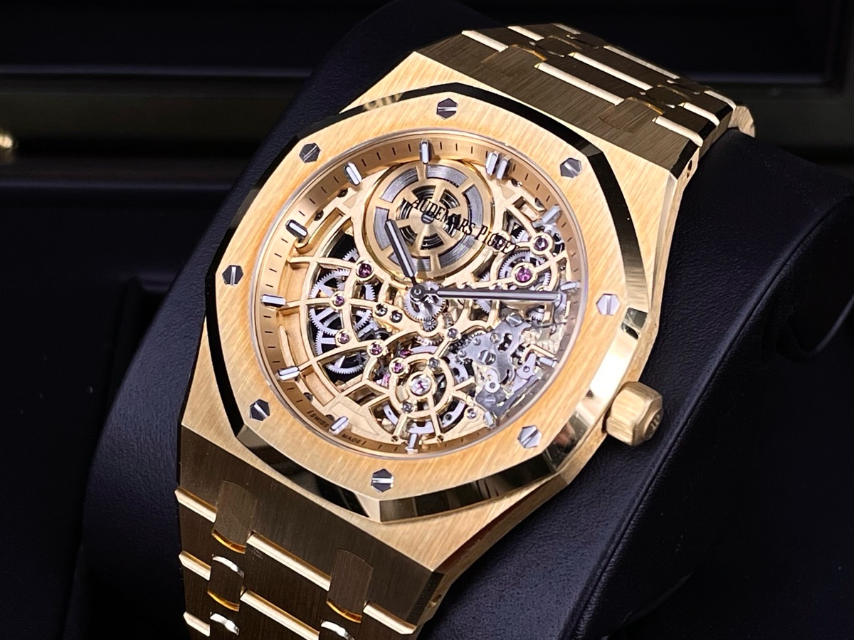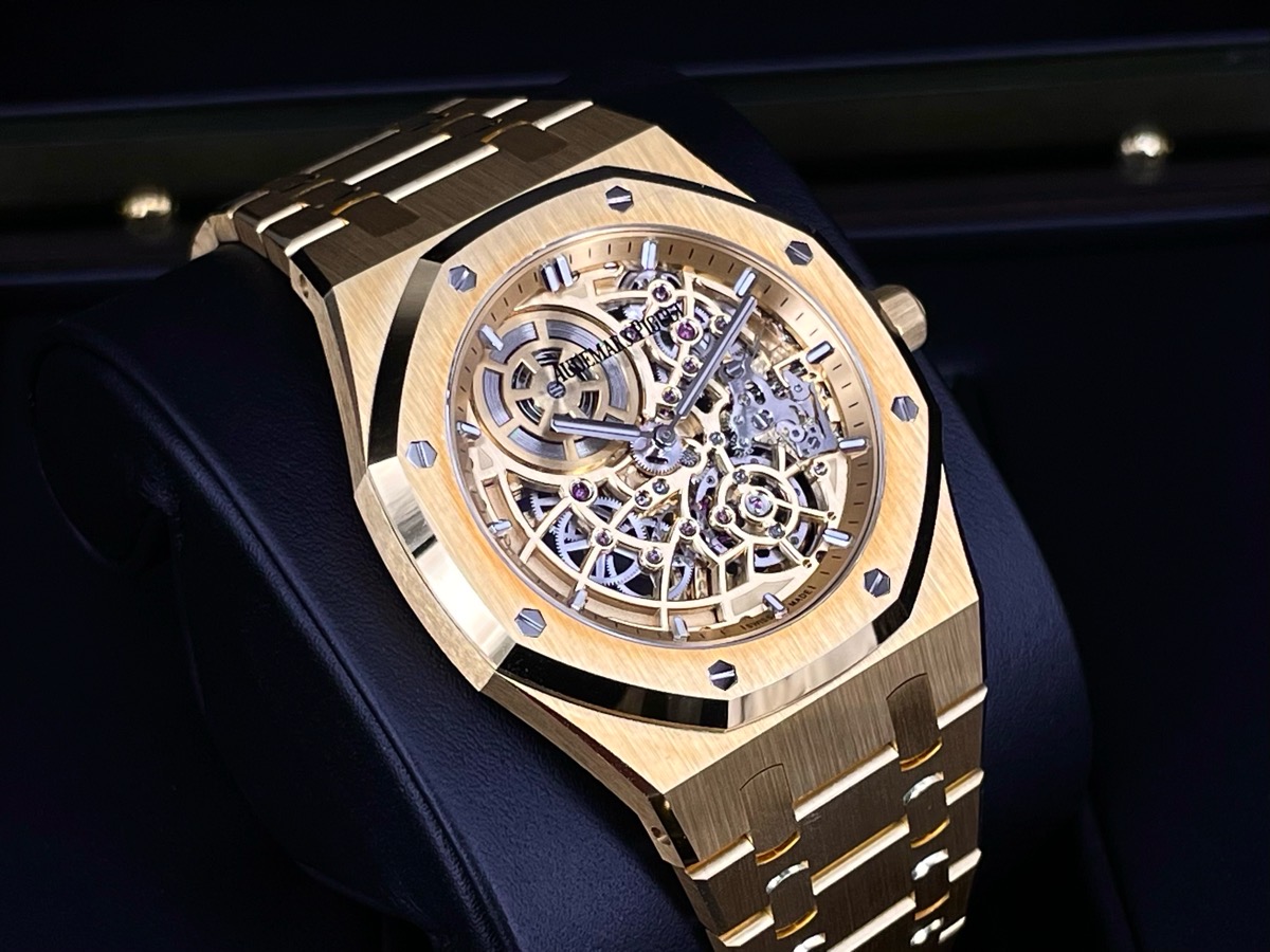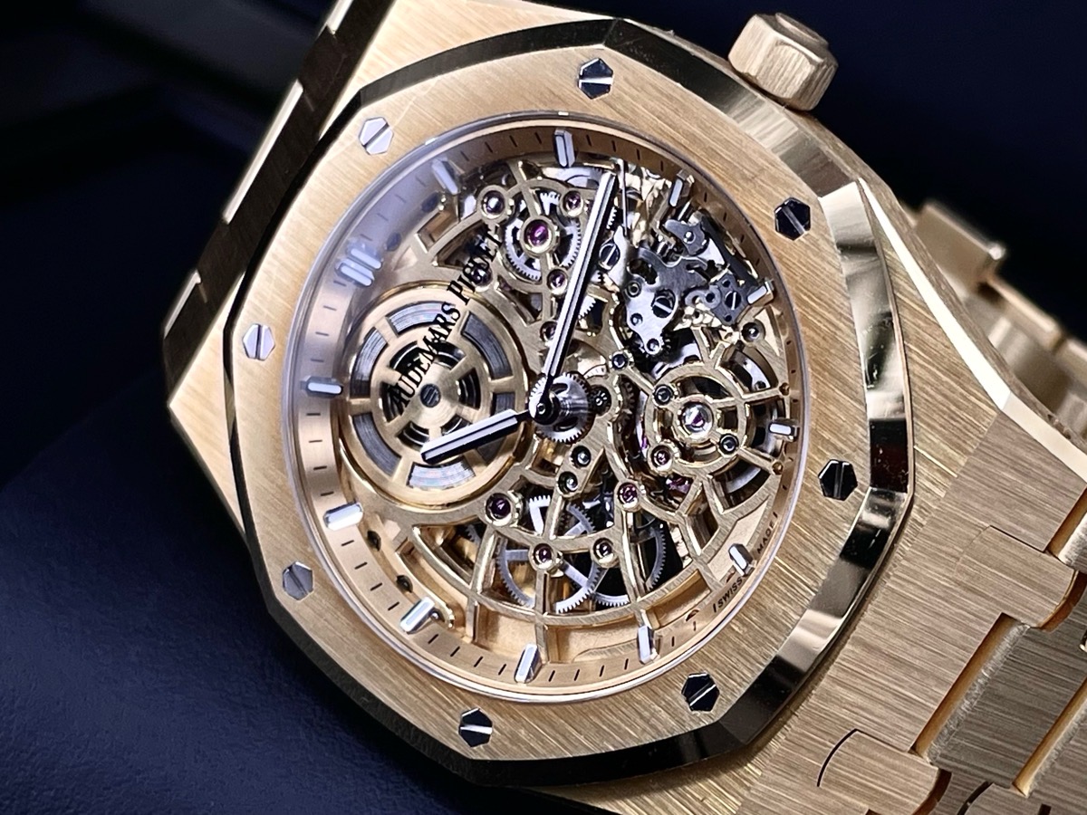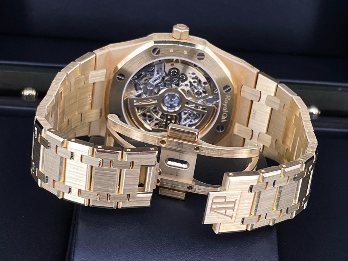 Audemars Piguet 愛彼 AP錶 Royal Oak 皇家橡樹系列 <font color=「JUMBO」超薄鏤空腕錶 16204BA.OO.1240BA.01 18K黃金錶殼 金色鏤空機芯 2024年保卡 ">
