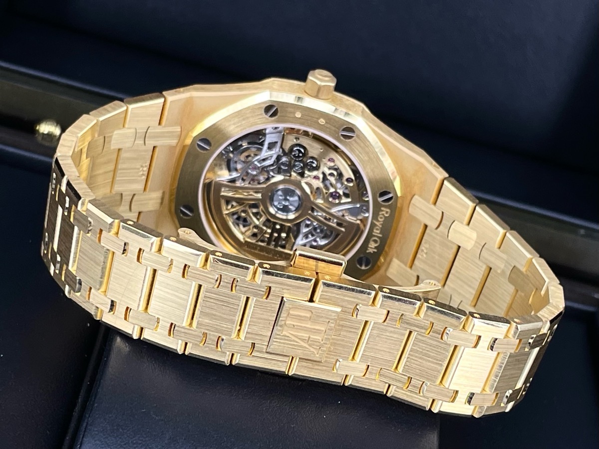 Audemars Piguet 愛彼 AP錶 Royal Oak 皇家橡樹系列 「JUMBO」超薄鏤空腕錶 16204BA.OO.1240BA.01 18K黃金錶殼 金色鏤空機芯 2024年保卡